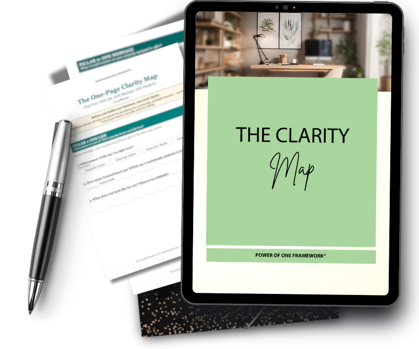 Download the One-Page Clarity Map — the same exercise I use with my private clients to find their ONE life, ONE message, and ONE plan.