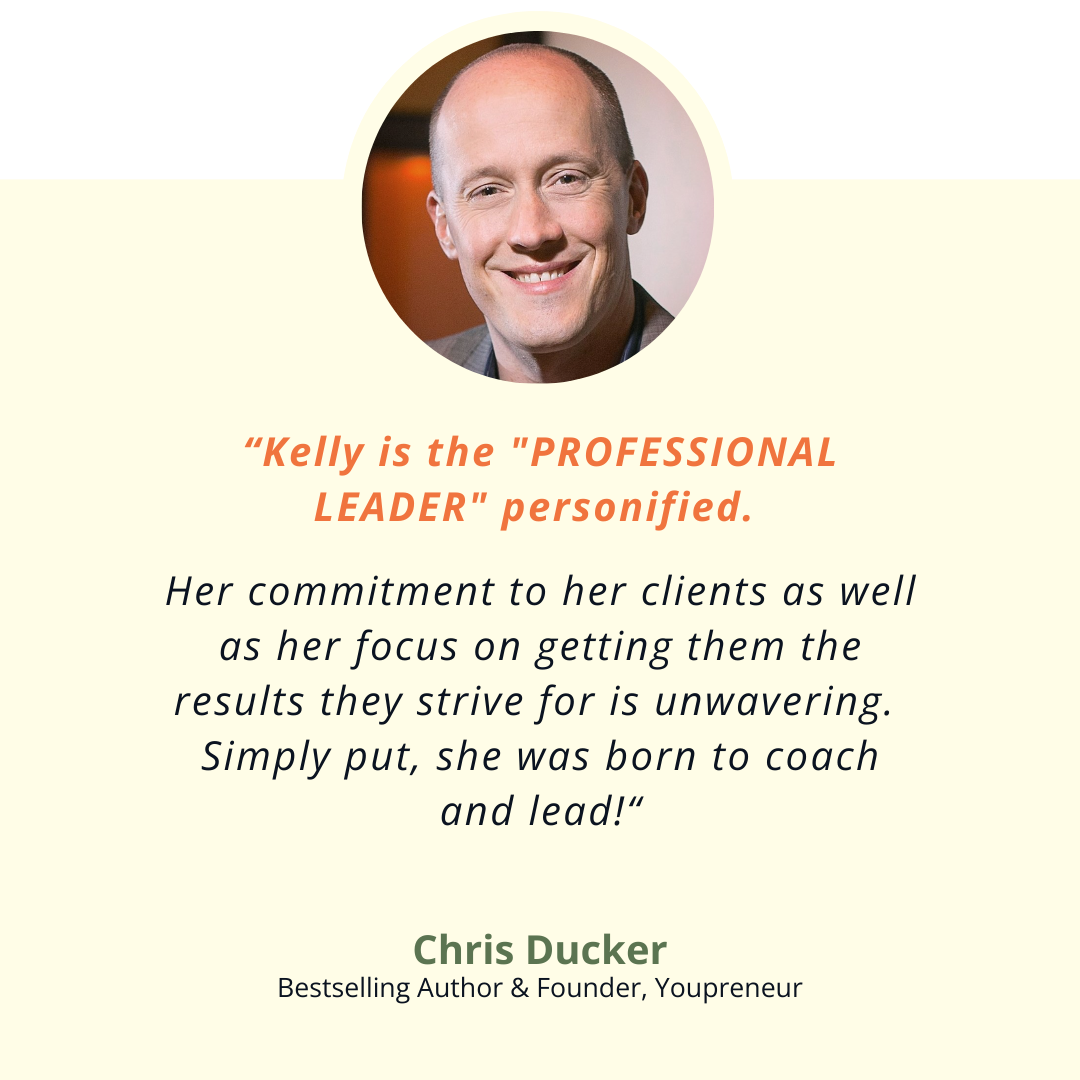 "Kelly helped me capture my vision and create a plan of action — leading to a direct increase in my earnings. She challenges you to grow and play bigger."